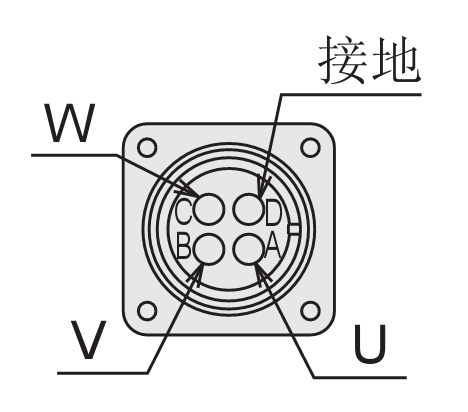 插頭管腳A對應U,管腳B對應V,管腳C對應W,管腳D對應接地。如圖:
