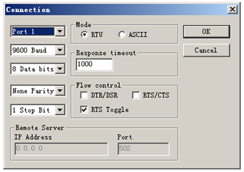Modbus通信協(xié)議分為兩種串行通信模式,ASCII 和RTU 通信模式。在使用時(shí),需要先設定通信模式以及串行口RS232、RS485的通信參數(波特率,奇偶校驗,從機地址,數據位,停止位,字節順序),在Modbus 總線(xiàn)上的所有設備應具有相同的通信模式和串行通信參數