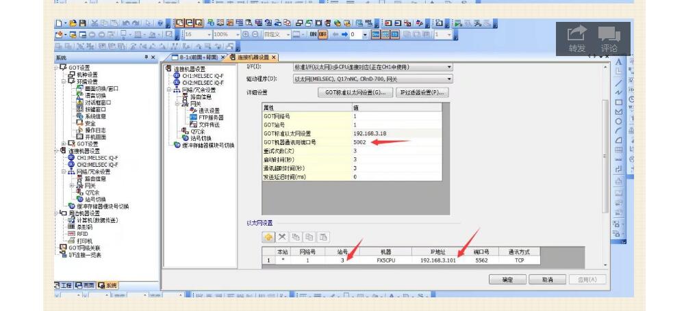 三菱5U PLC  做SLMP  通訊求大神指點(diǎn)。最好有范例。5臺5U PLC 和維綸觸摸屏做以太網(wǎng)通訊。