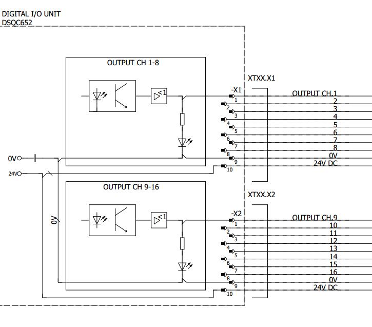 652如果接外部傳感器,那就要用PNP型的,如果和PLC的IO連接,日系的繼電器的PLC輸入輸出都可以,輸入主要是COM接線(xiàn)要接N24就可以了,我們一般專(zhuān)門(mén)拿一個(gè)擴展來(lái)和ABB的652進(jìn)行IO通訊用,常用的如OMRON和三菱都可以直接對接
