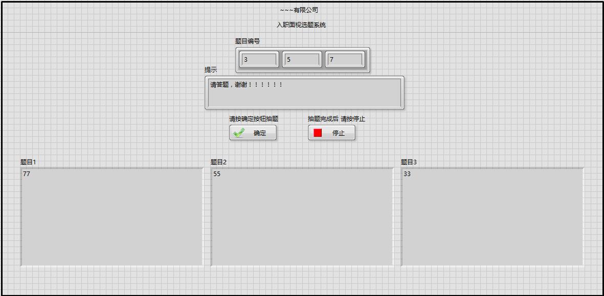 這是我用LabView開(kāi)發(fā)的選題系統。針對員工面視的水平測試。