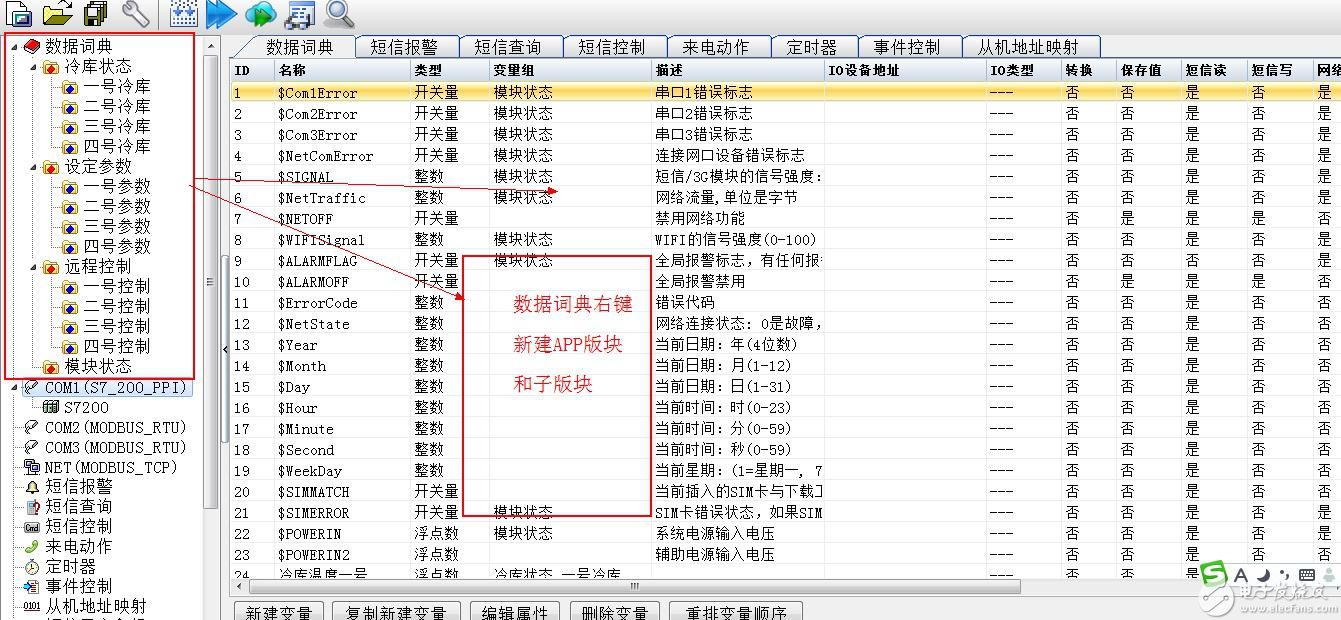 最后所有要在手機APP里顯示的變量建好后,下載到GRM500模塊里