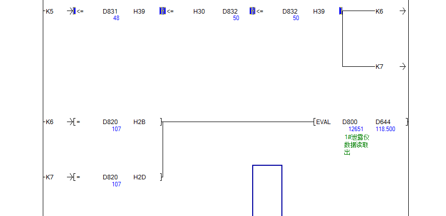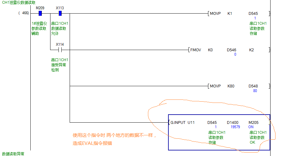 各位前輩好 ,小弟現在使用三菱L系列PLC通過(guò)LJ71C24-R2模塊使用無(wú)協(xié)議通訊方式和一臺儀表通訊,現在在通訊過(guò)程出現了一些異常,造成指令EVAL運算異常,造成PLC報警,現在為了正常使用,小弟現在使用指令WTOB將需要進(jìn)行換算的存儲器的值分開(kāi),單獨進(jìn)行約束,請問(wèn)前輩們還有其他更好的方法嗎,