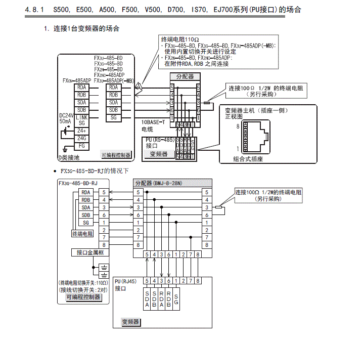 fx2N通過(guò)fx2N-485-BD與三菱D700變頻器通訊,用李金城編寫(xiě)的那本書(shū)里面的實(shí)例程序與變頻器通訊不了,是不是接線(xiàn)不對?望高手指導一下485與D700怎么接線(xiàn),在此先謝謝了!