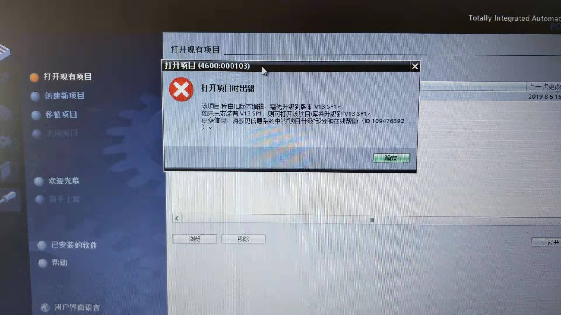 用博途V14打開(kāi)V13程序時(shí)出現“打開(kāi)項目出錯”對話(huà)框