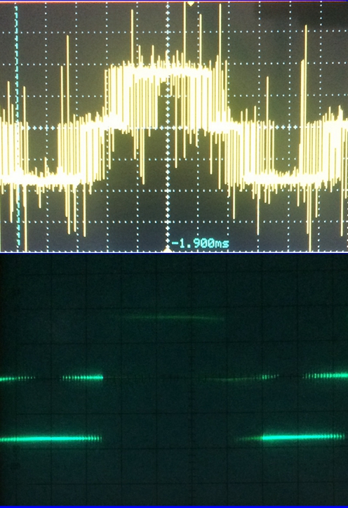 原因找到,下面是IGBT驅動(dòng)波形前面幾個(gè)斬波: