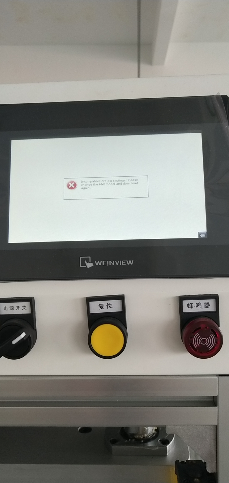 開(kāi)機報警     Incompatible project setting! Please change the HMI model and download again    屏幕是維綸的TK6071IP的,在客戶(hù)那里用了大約半年了,今天開(kāi)機就出現這個(gè)報警,什么原因一般,開(kāi)始以為通訊線(xiàn)松動(dòng)了,但翻譯過(guò)來(lái)說(shuō)是型號不匹配,可是用了半年了,突然上電出現的這個(gè)報警,想不通啊,有大神指導下那!