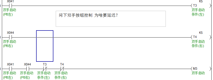 今天看到同事寫(xiě)的程序,不明白雙手按鈕控制為啥還要加延時(shí)?