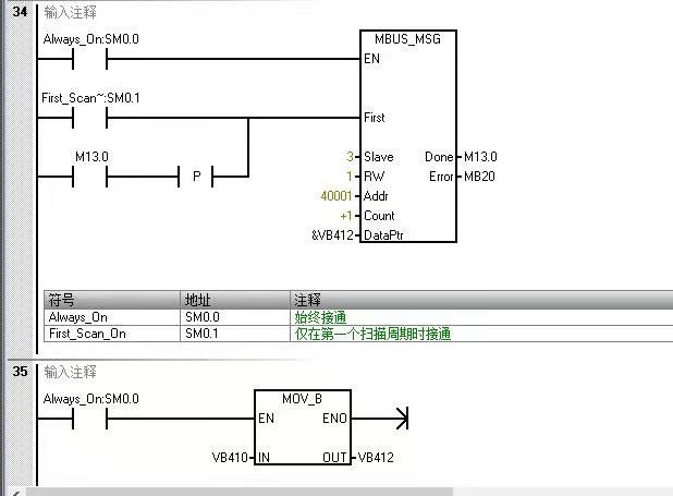 請教各位大神,我做了一個(gè)s7200 smart 與單片機通訊的程序,想通過(guò)plc來(lái)控制單片機那邊設備的啟停,如下圖,在測試的時(shí)候,中繼M13的觸點(diǎn)在不斷的通斷閃爍,表明已經(jīng)通訊上了,但是就是不能寫(xiě)入數據1,請各位大神指點(diǎn)一下!那個(gè)&vb411里顯示的16#0800019B是什么意思?