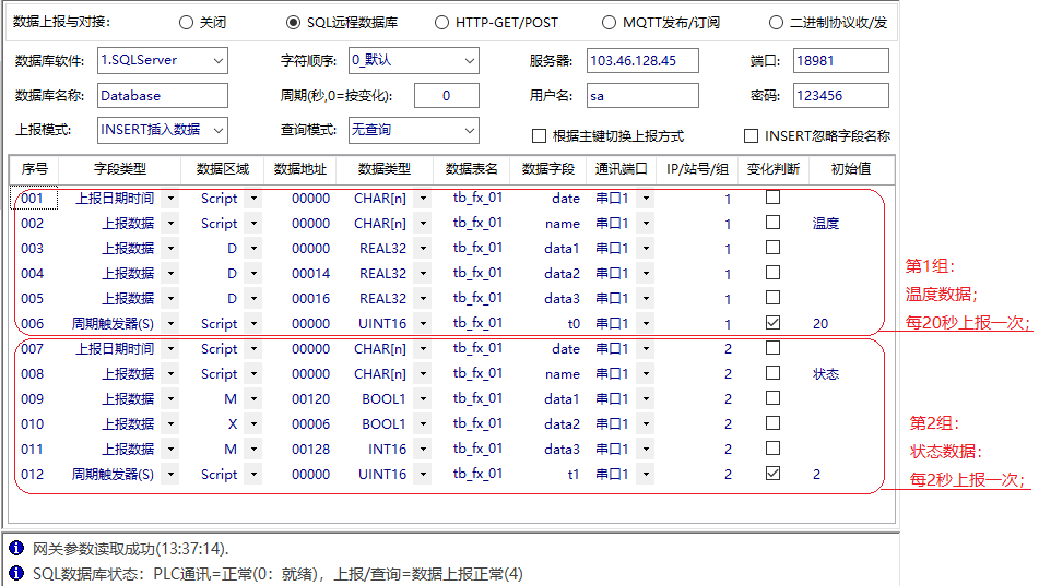 IGT-SER系列智能網(wǎng)關(guān)模塊,支持各種PLC、智能儀表、遠程IO與數據庫之間雙向通訊,既可以讀取設備的數據上報到SQL數據庫,也可以從數據庫查詢(xún)數據后寫(xiě)入到設備;數據庫軟件支持MySQL、SQLServer、PostgreSQL。相關(guān)軟件和手冊在附件中。