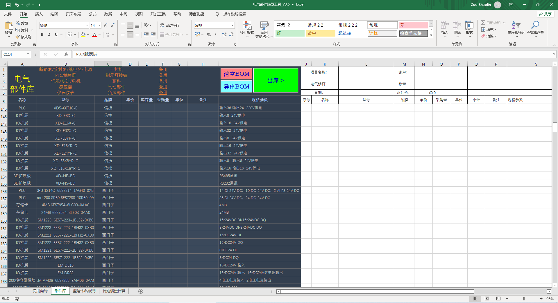 本人基于Excel開(kāi)發(fā)的一個(gè)硬件選型一鍵出BOM的工具,麻雀雖小五臟俱全,里面收錄了幾百種常用的電氣元器件,可以一鍵硬件選型,一鍵生成BOM清單,BOM計價(jià) 伺服步進(jìn)電機轉矩慣量計算,等方便實(shí)用功能,選型出BOM事半功倍,強烈推薦
