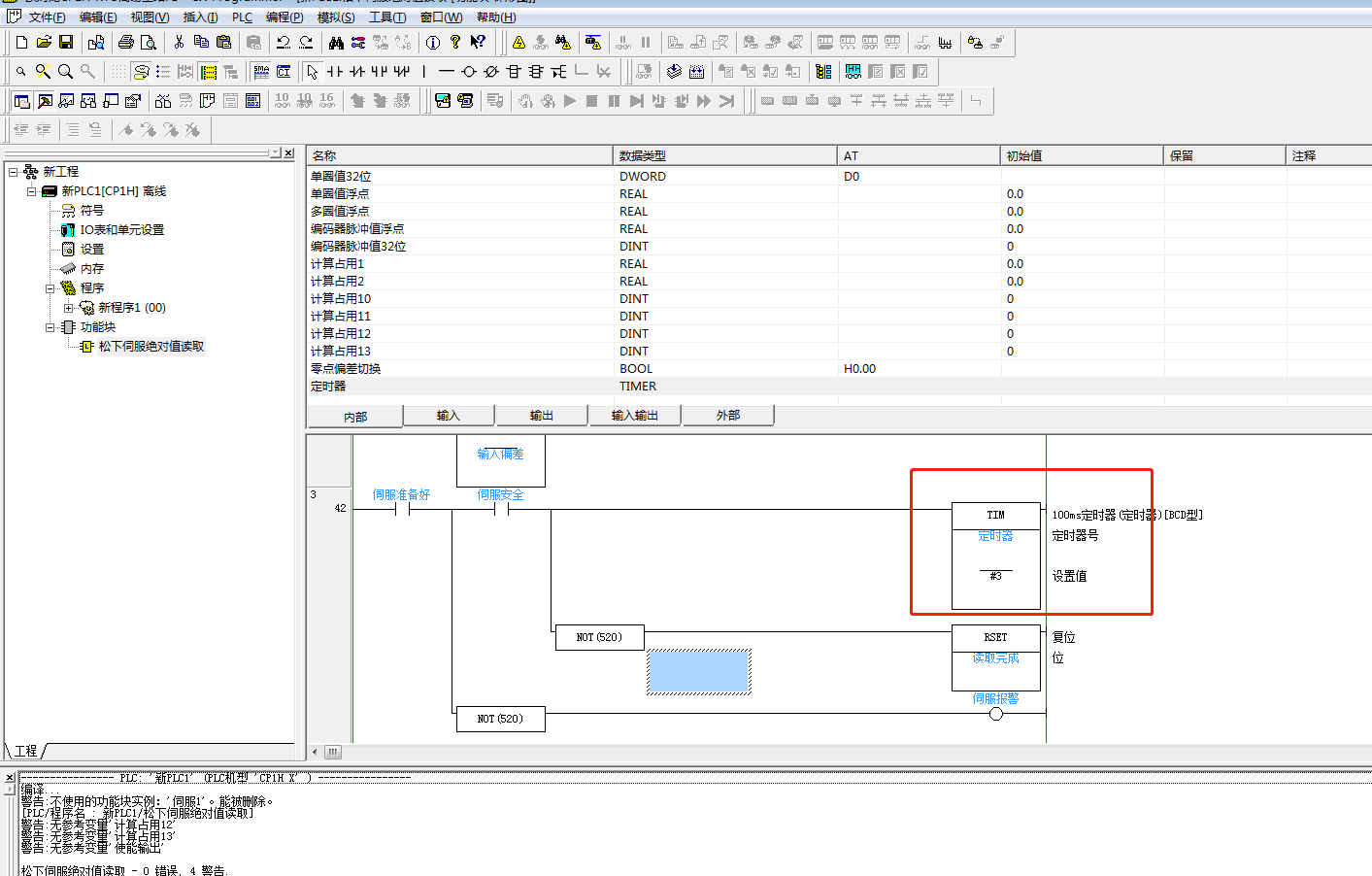 CP1H有時(shí)候出現很多奇奇怪的,都無(wú)法編譯,比如功能塊里面不能直接使用D0,非要轉成自定義的變亮,還有這個(gè)定時(shí)器也是非要16進(jìn)制的
