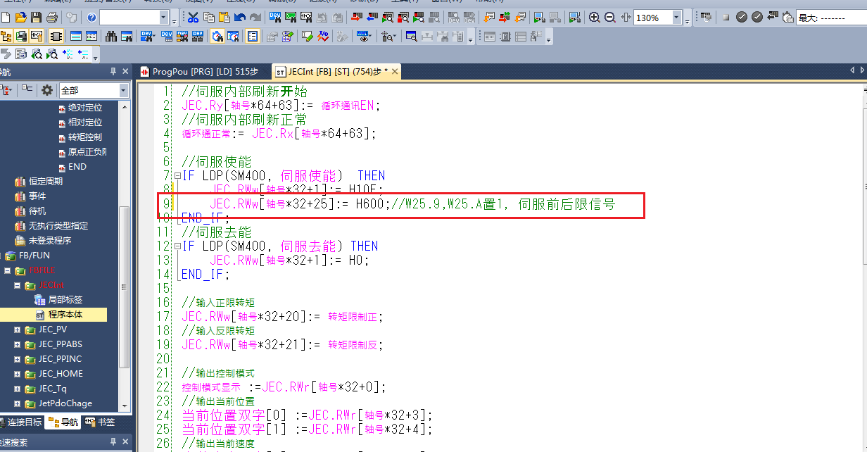 三菱工程師給的FX5U-JET例子,這里是一臺伺服,我要用到3軸,在刷新設置那里走了不少彎路;