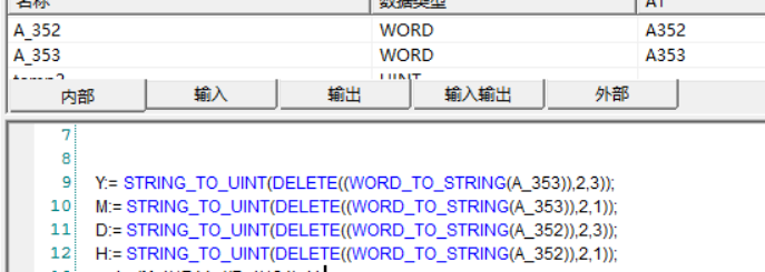 我也感覺(jué)好像復雜了,其實(shí)就是讀出來(lái)PLC系統內部時(shí)鐘吧,A351-A353,然后把年月日時(shí)分秒單獨放到一個(gè)字里