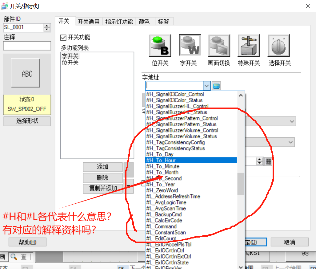 普洛費斯觸摸屏#H和#L各代表什么意思?有對應的解釋手冊資料嗎?請大神幫忙看看,謝謝!