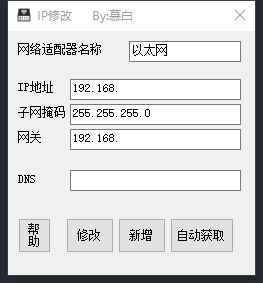 因本人電腦安裝不知什么軟件之后不能手動(dòng)更改IP 會(huì )提示:出現了一個(gè)意外的情況,不能完成所有你在設置中所要求的更改。 所以又自行寫(xiě)了個(gè)小玩意,感興趣的可以下載來(lái)看看