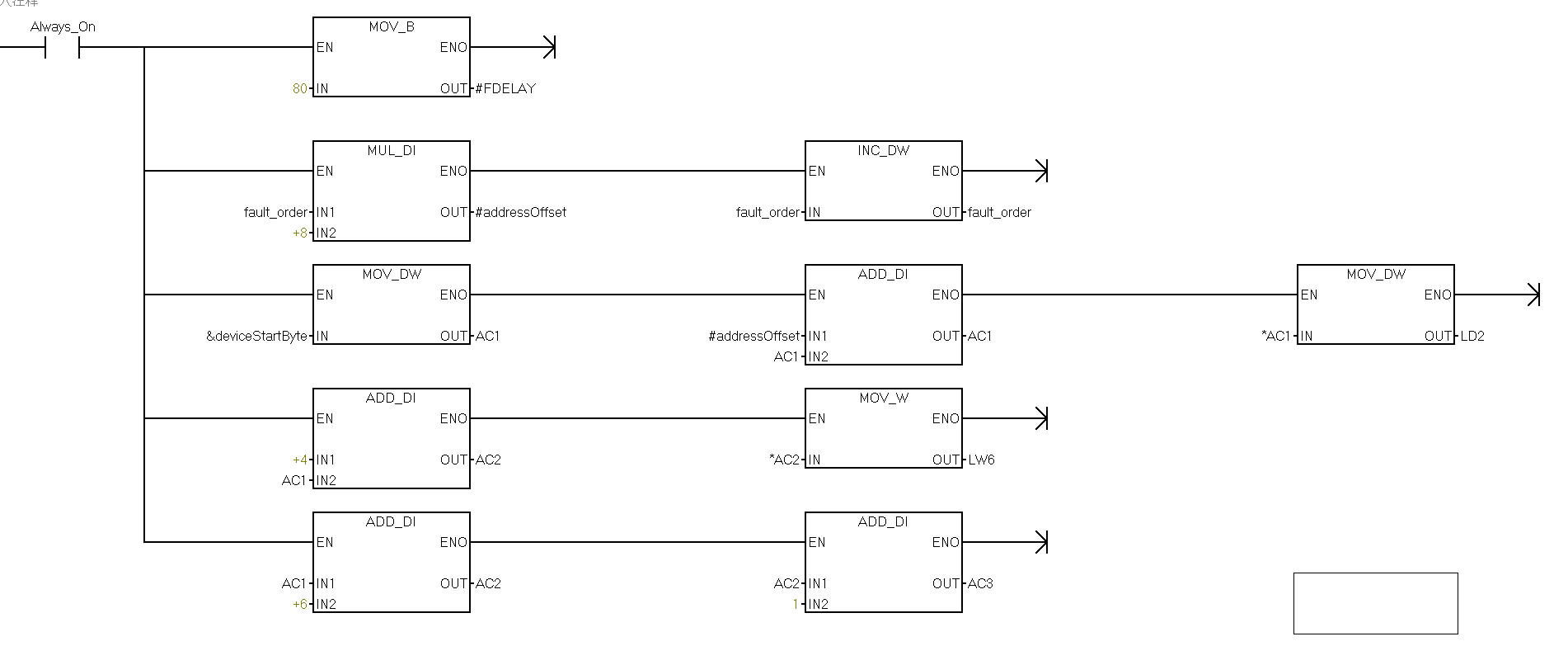 傳送指針用 MOV_DW,AC1,AC2,AC3 計算用DW相關(guān)的計算,引用的時(shí)候直接*AC1就行了,指令需要什么類(lèi)型自動(dòng)識別什么類(lèi)型,不需要特意去寫(xiě)B W D