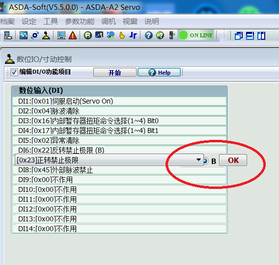 很久不用臺達伺服了,今天打開(kāi)ASDA-SOFT V5.5,想重新設定IO,軟件變成這樣了,重裝也不行,什么回事呢?圖片紅圈處,想改變A接點(diǎn),被蓋住了