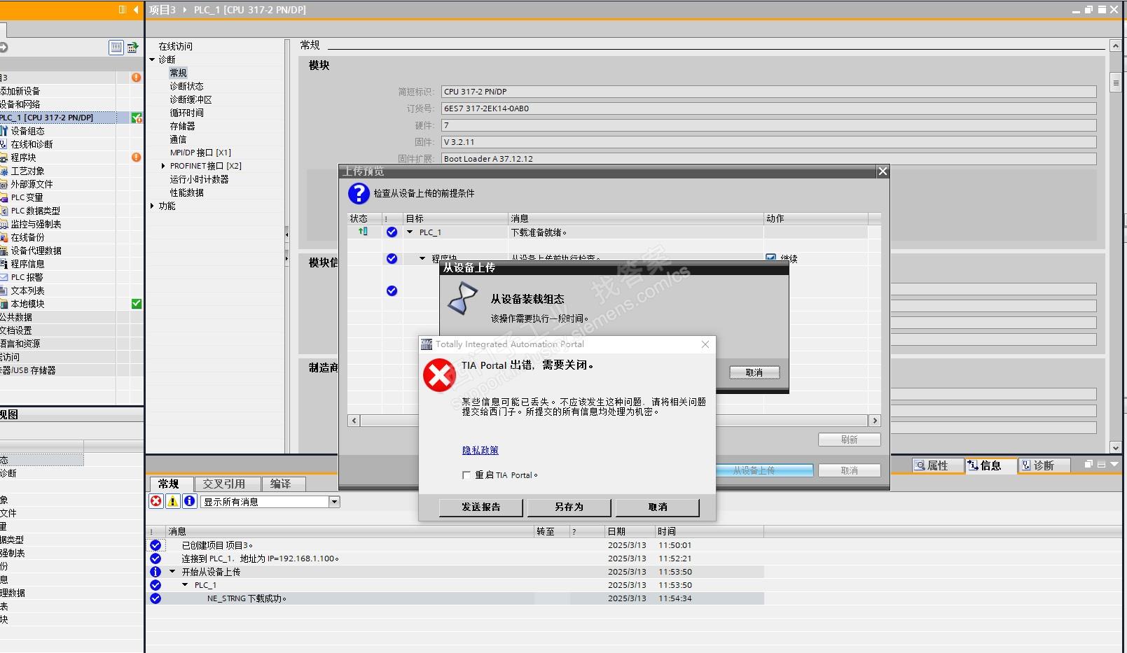 用軟件打開(kāi)程序在線(xiàn)連接沒(méi)有問(wèn)題,但上傳程序中途就報錯。