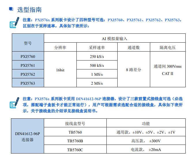 PXI576x 是一系列隔離模擬輸入同步采集卡,該系列采集卡提供了 16 位,8 路差分模擬輸入通道,采樣率最高支持 2MS/s;300Vrms 的通道間 CAT II 隔離和 3300 Vrms 通道對地