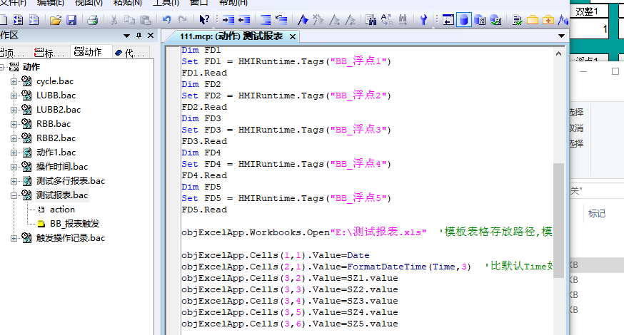 第一步,準備測試變量。本例我們只做核心功能部分演示。因為數據的累計和平均一般都在下位中做好了,我們只需要把對應數據定時(shí)另存到Execl表格中就行。每小時(shí)存一次就是時(shí)報表,每天存一次就是日報表,以此類(lèi)推。