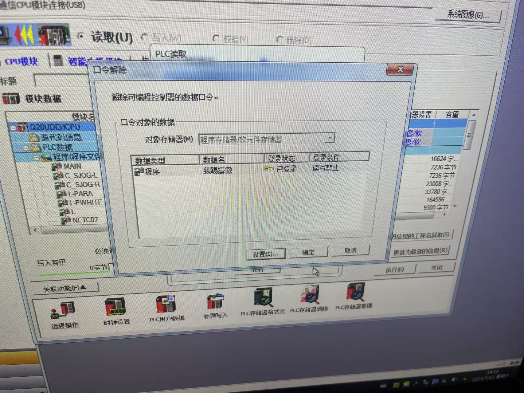 一臺三菱Q20的PLC上傳程序時(shí)只能勾選MAIN主程序讀,如果勾選全部程序就報錯“已登錄,禁止讀寫(xiě)”,單獨讀出的主程序左側智能模塊處紅色,報錯“沒(méi)有分配地址”