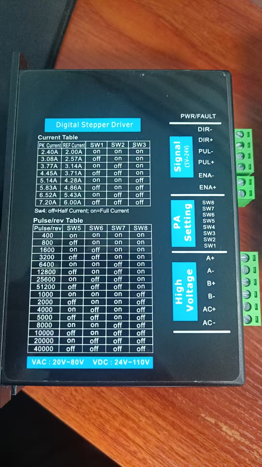 引用引用第1樓淺酌憶流年于2025-07-23 08:50發(fā)表的 :假設電機步距角1.8度,那么轉360度,沒(méi)有細分的就需要200脈沖,細分是400的話(huà),就是2個(gè)脈沖轉1.8度,800就是4個(gè)脈沖轉1.8度,1600就是8個(gè)脈沖轉1.8度,以此類(lèi)推,一般PLC發(fā)射脈沖頻率100KHZ,就是每秒100K個(gè)脈沖,根據以上能知道pul/r 脈沖頻率變化pul/s 兩個(gè)做除法可得到r/s 即可化成r/min