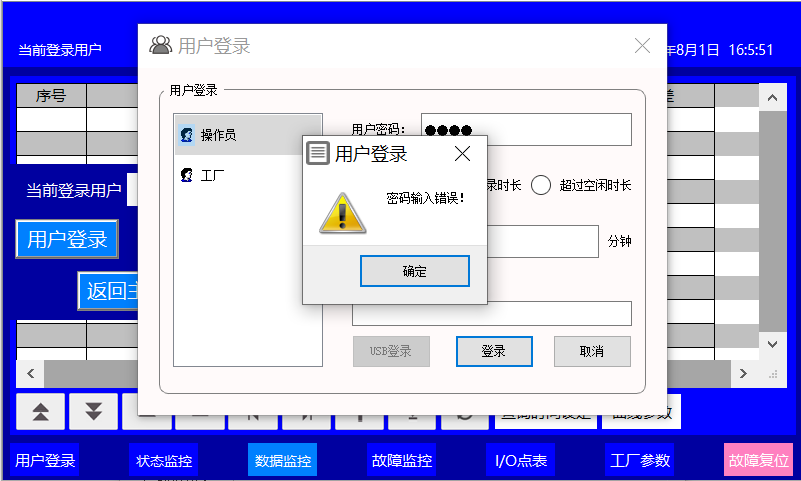 ![]() 觸摸屏型號是TPC7032Kt/Ki/Kw/Kx(800x480),提示就是密碼錯誤,這個(gè)是我自己設置的密碼,一開(kāi)始給的是8022,但是現在客戶(hù)那邊登錄密碼用8022,登錄不進(jìn)去了,然后我打開(kāi)原來(lái)的觸摸屏也登錄不進(jìn)去,不知道咋回事。 |