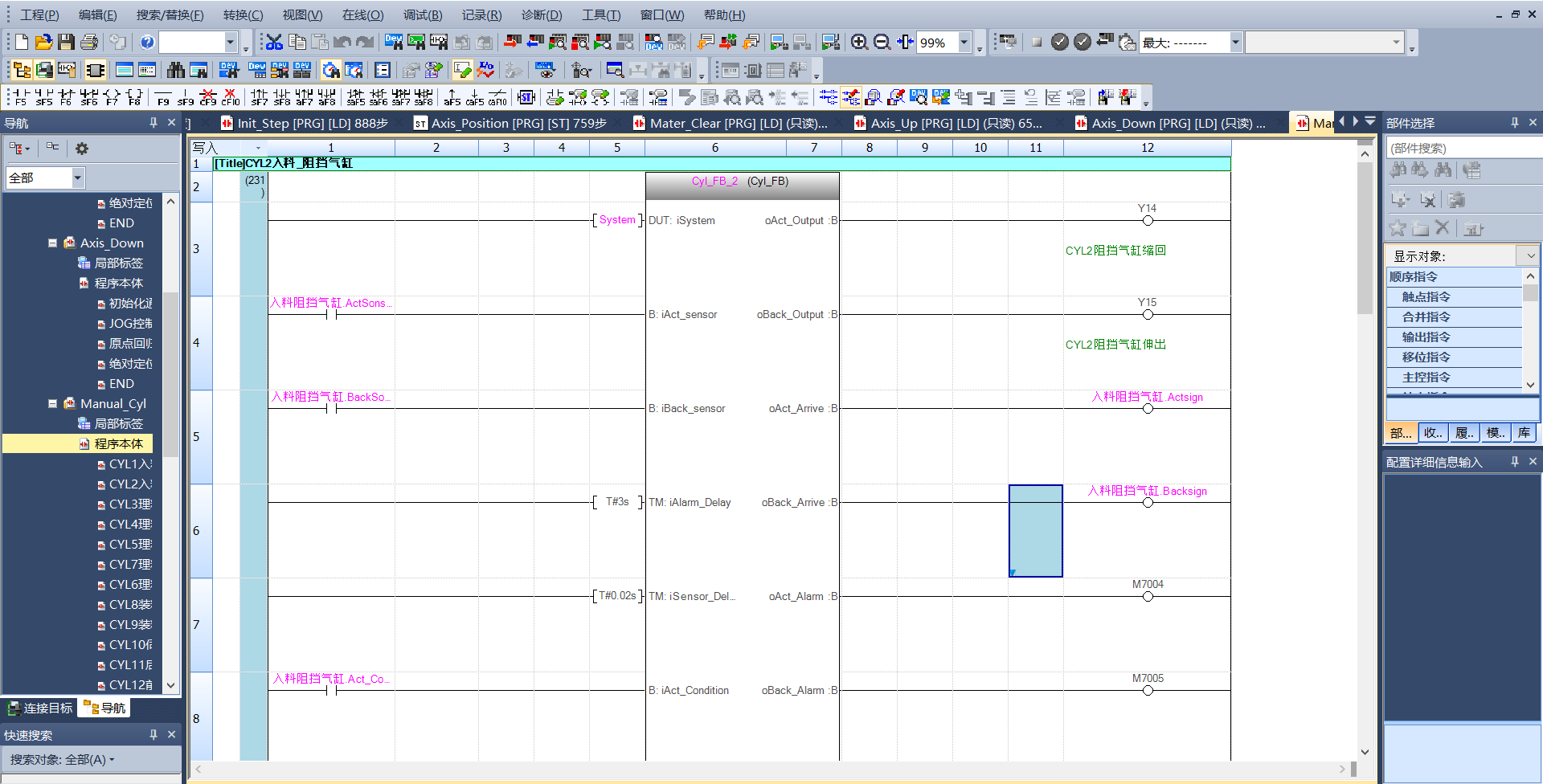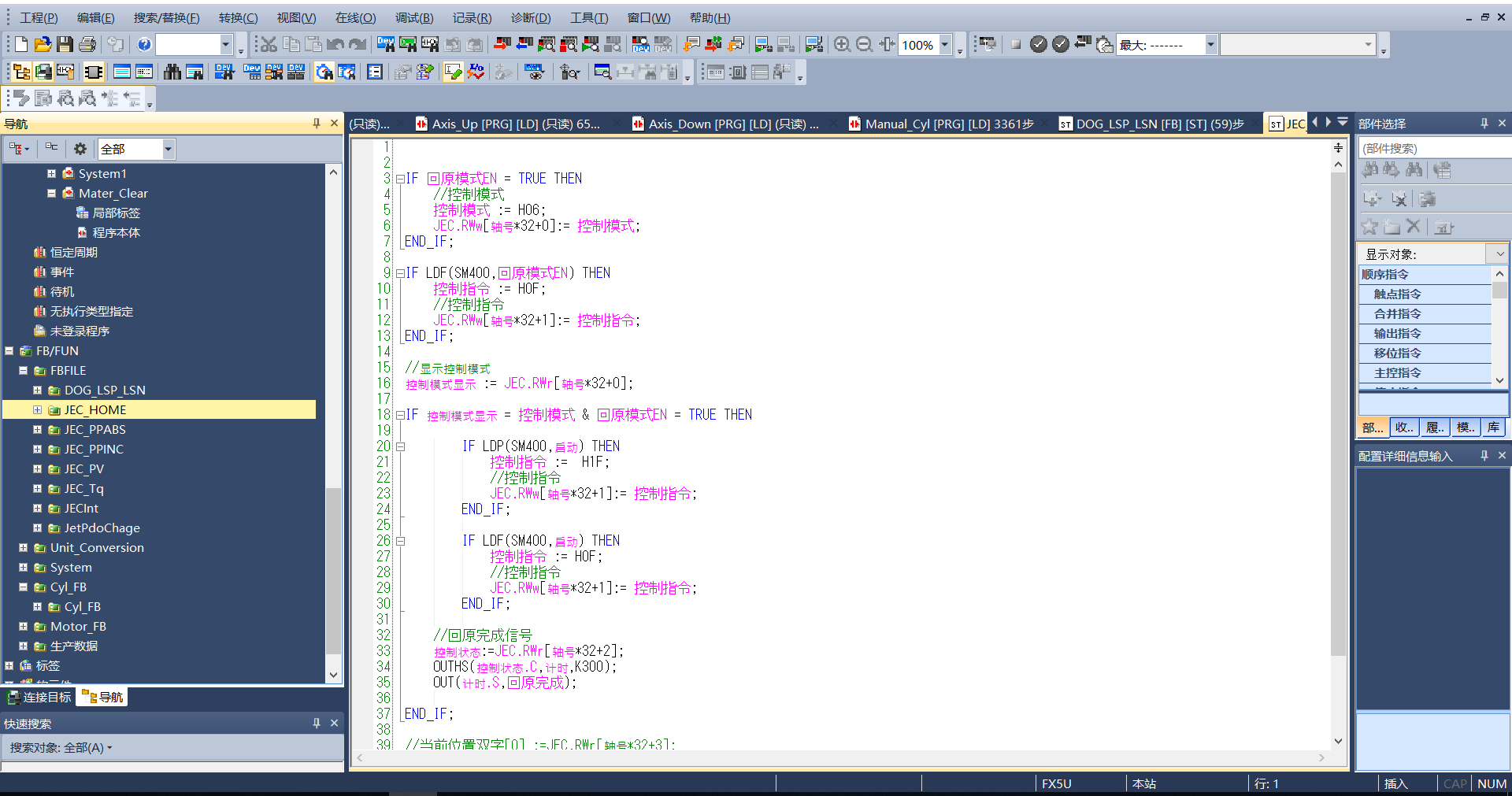 FX5U的FB塊蠻好用的,做了軸、汽缸、真空發(fā)生器等FB塊