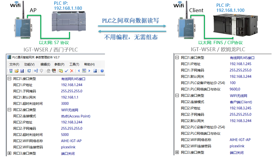 二、跨網(wǎng)段的PLC之間通訊: IGT-DSER智能網(wǎng)關(guān)的兩個(gè)網(wǎng)口設置為不同的網(wǎng)段,每個(gè)網(wǎng)口是獨立的不同網(wǎng)段的子網(wǎng)。