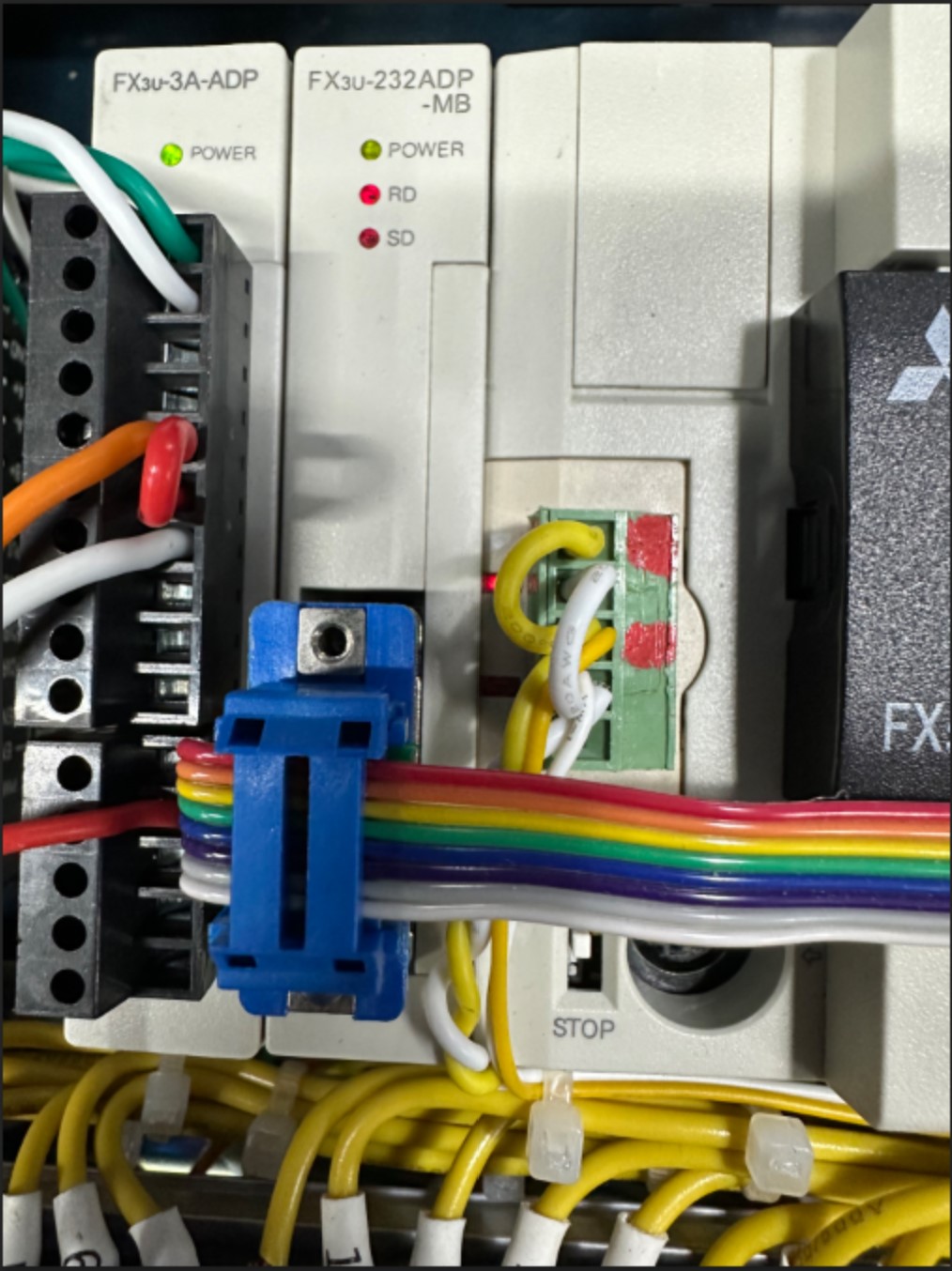 自己會(huì )編程的  把232ADP的換成485ADP(485可以一對多通訊)。一定要有232通訊的話(huà)3U有個(gè)右側232IF模塊(還是左側還用485),應該也可以用....