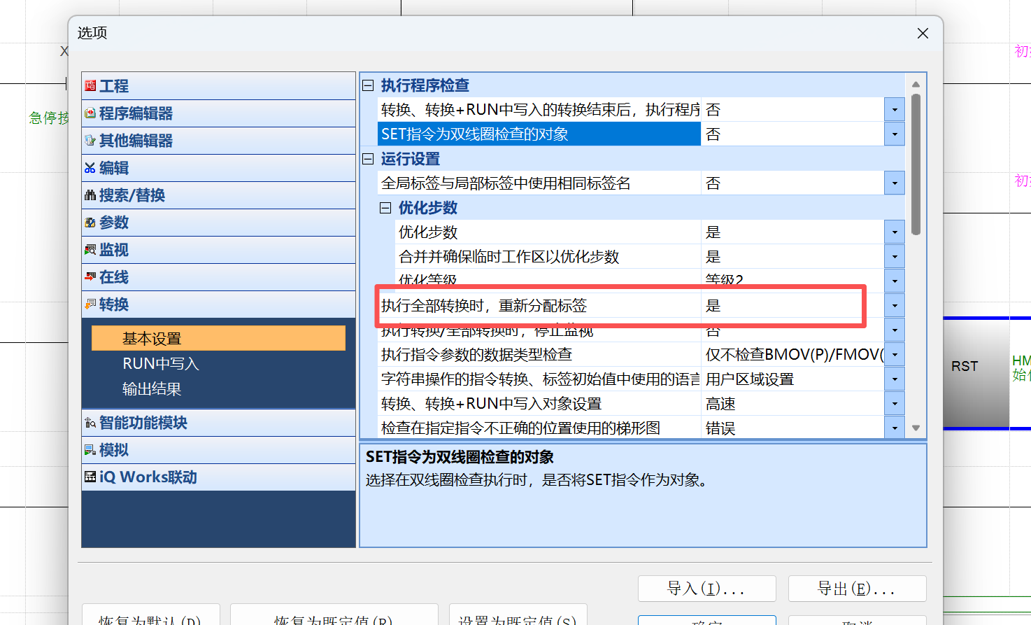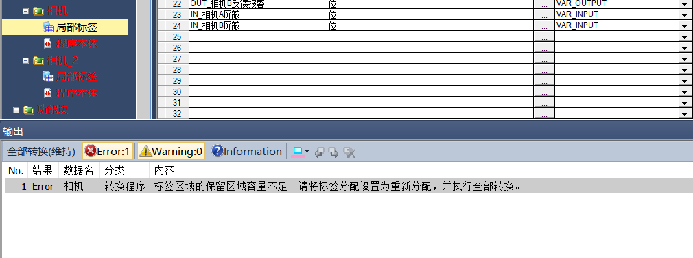 解決方法:工具-自動(dòng)分配軟元件設置,分配更多的軟元件給自動(dòng)分配區(注意自動(dòng)分配的區間編程時(shí)不要人工調用或使用,也不要與斷電保持區間之類(lèi)的重復);驕p少FB所使用的標簽。