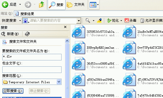 此圖是在上圖里選擇搜索“*.flv”,當搜索完成后,右鍵“打開(kāi)所在的文件夾”